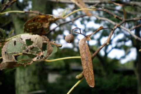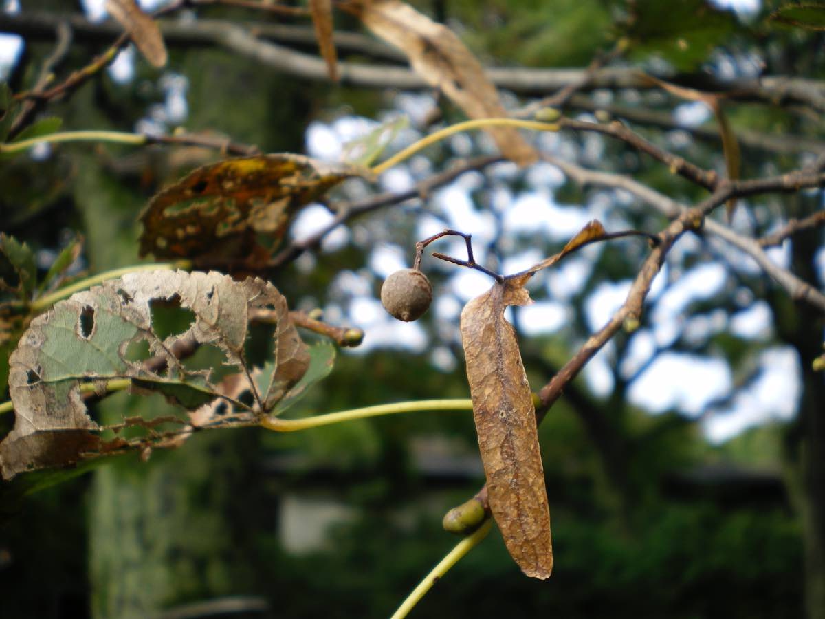 果実は堅果で10月ごろに熟し、総苞葉も最後まで残って一緒に落下します。