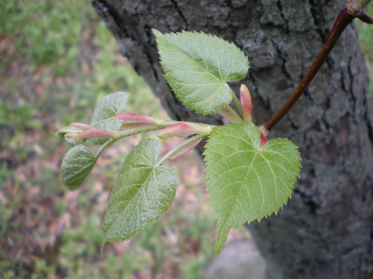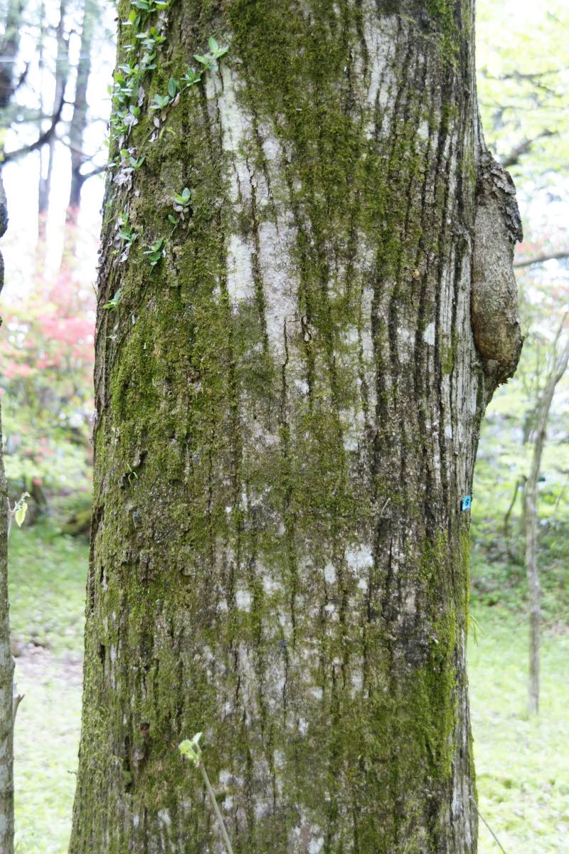 九州から北海道までの山地、特に寒い地方に生えています。日本固有種と記載する例もあるようですが、中国にも自生しているそうです。高さは20m程度ですが、中には40m近くになる大木もあるようです。 葉は長さ4〜10cmの心円型、先の尖ったハート型です。また左右不相称です。脈腋には淡褐色の短い毛がまとまってが生えています(これを毛叢と言います)。葉は秋に黄色に色づきます。樹皮は暗灰色または灰褐色で縦に亀裂が入り、浅く裂けます。[1][2][3]