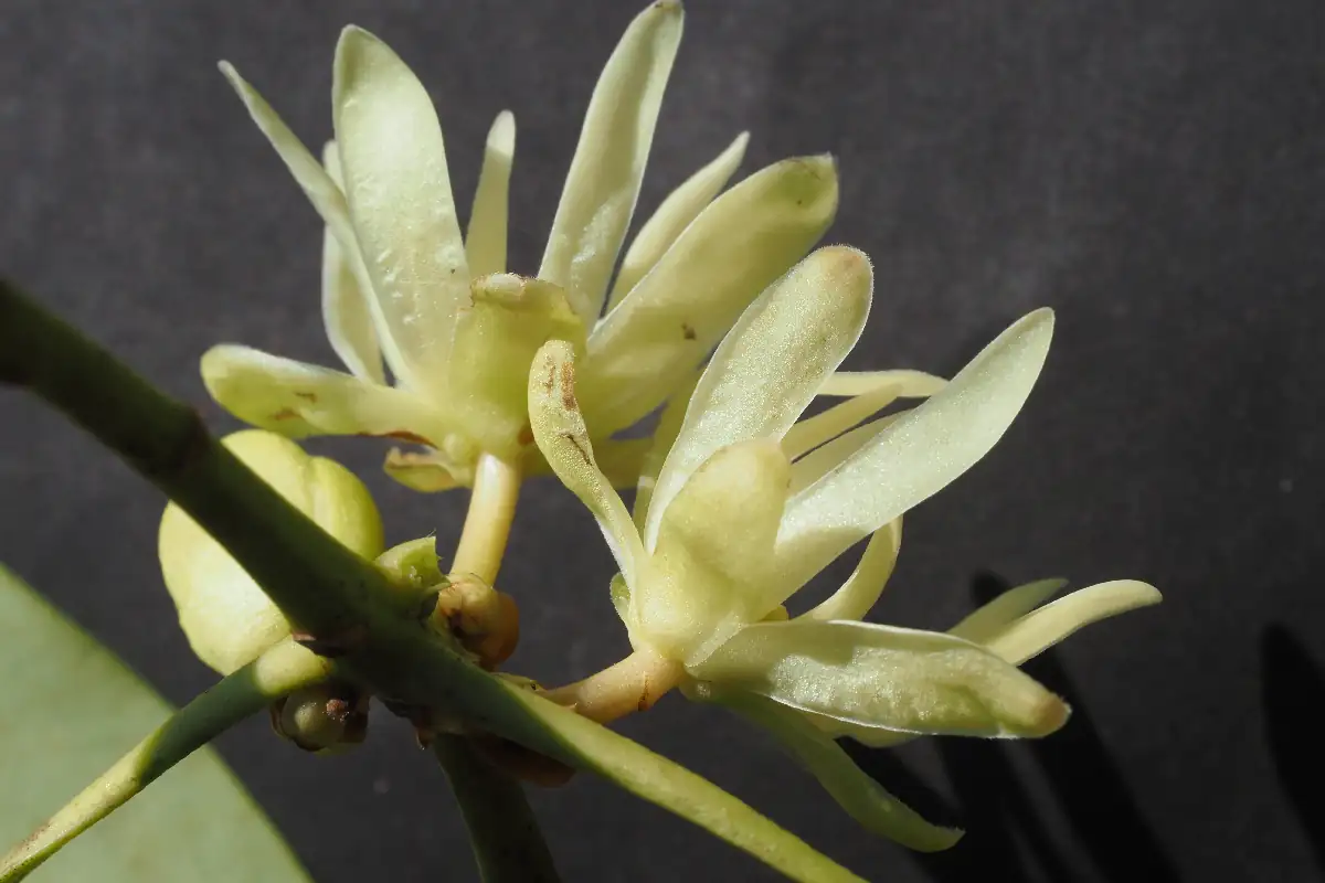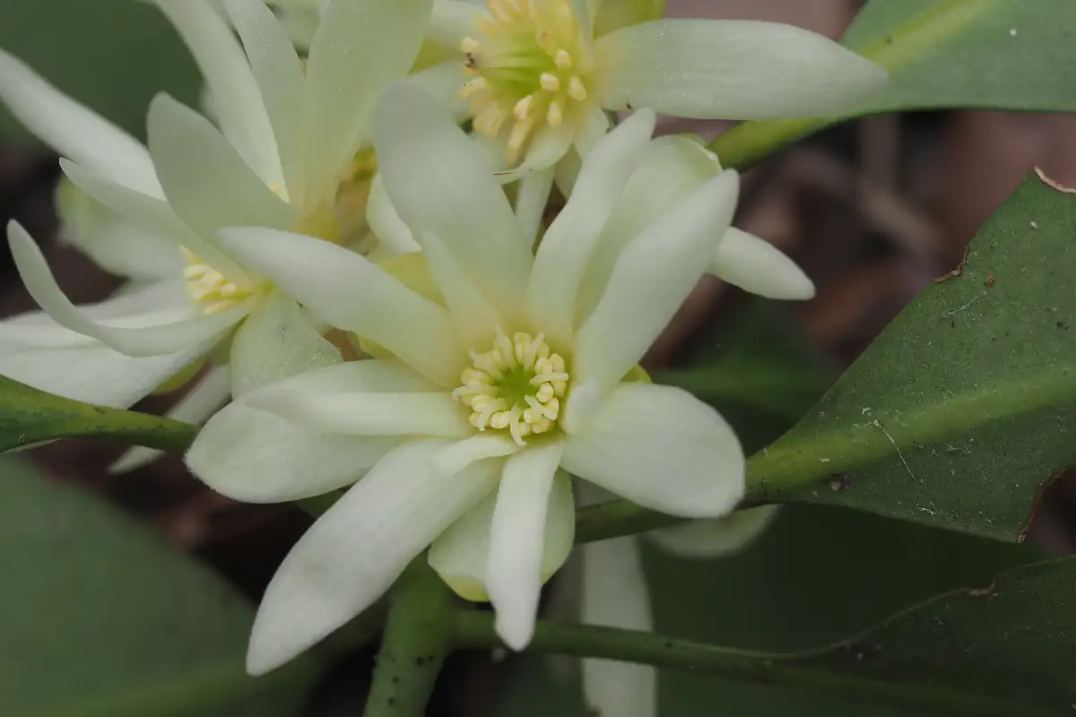 3〜4月に10〜20の花被片を持つ黄白色の花を咲かせます。