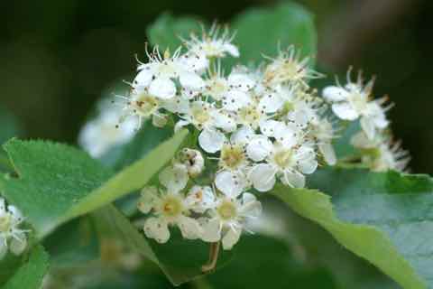 4〜6月に直径1cmほどの梅に似た白い花を固まって咲かせます。果実は大きさ1cm程度の楕円形で10〜11月に赤く熟し、食べることができます。また、後から付けたような突起が果実の柄の至る所に付いているのが特徴です。