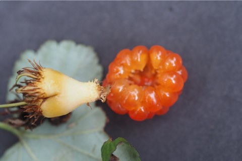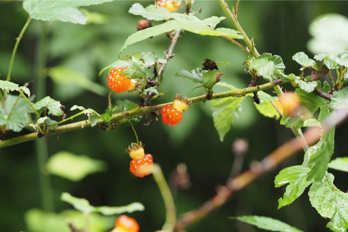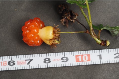 熟した赤い集合果は甘くておいしいのですが、種子をかみつぶすと苦味が出てきます。