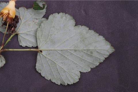 葉身は2〜10cmで、葉の裏は粉白色を帯び、その脈上や葉柄にも棘があります。