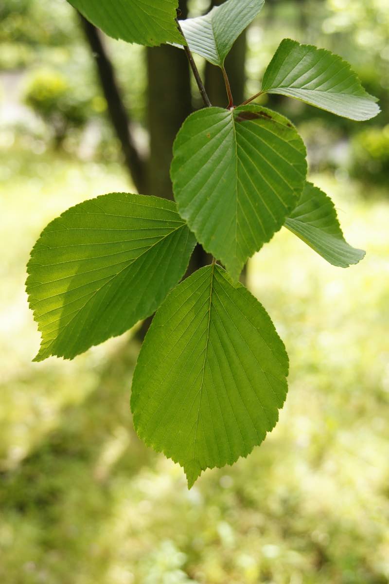 北海道から九州まで広く山地に生えていますが、特に東北から北海道に多く分布しています。高さは10~15mほどで株立ちになることもあります。葉の長さは5~10cmの卵形で、葉柄は赤味を帯び、葉脈が目立ちます。樹皮は灰黒褐色でざらつきます。[1][2][3]