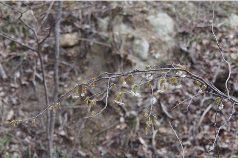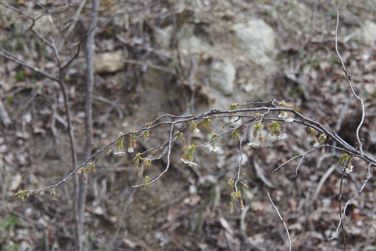3〜4月ごろ、葉の展開前か同時に白色または淡紅色の花を1〜3個づつ下向きに咲かせます。
