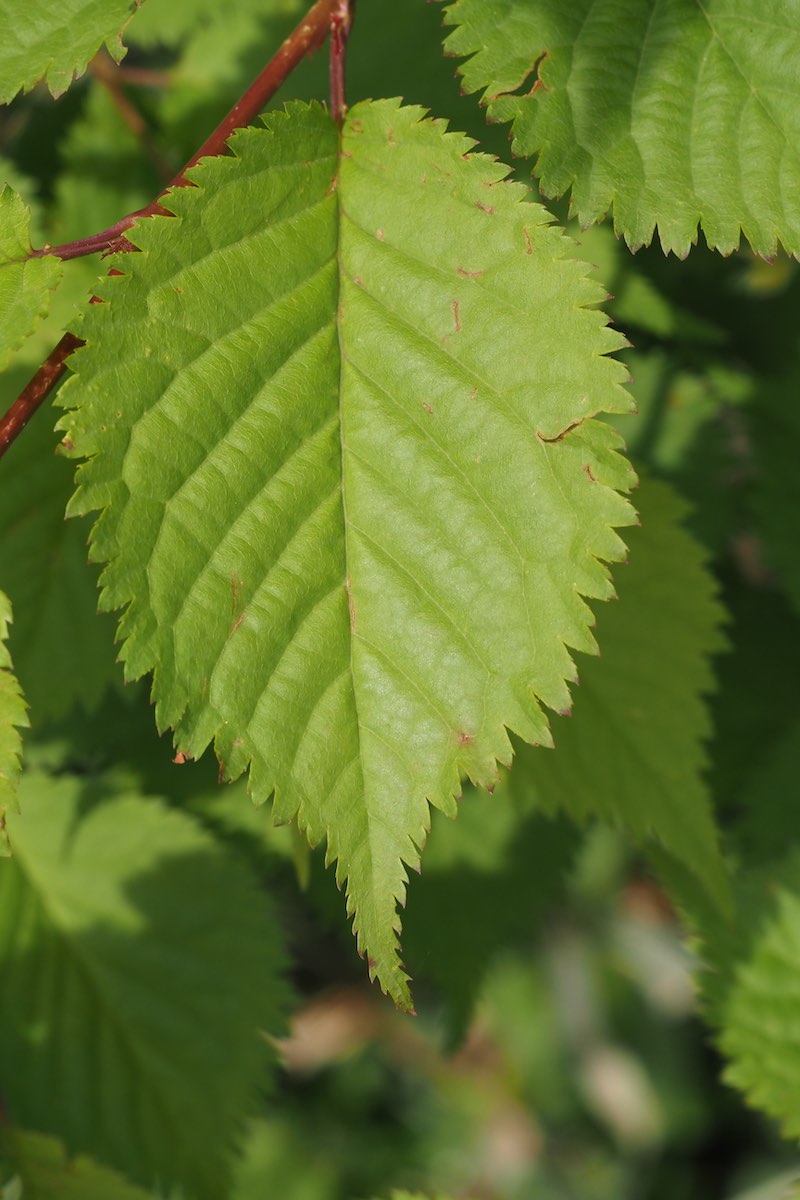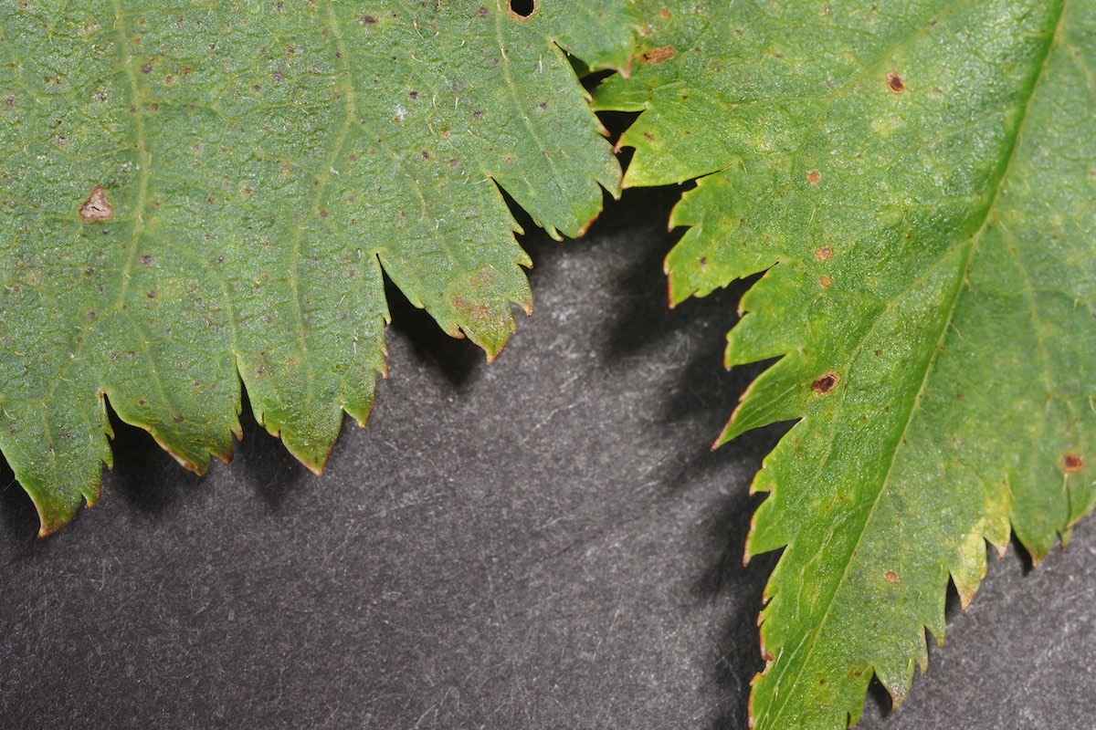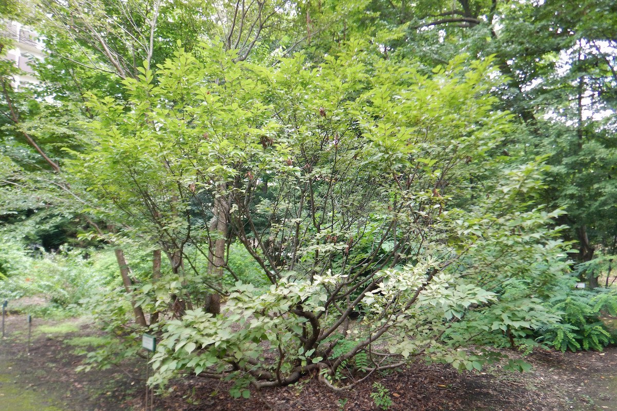 葉身が4〜10cmの倒卵形で先端が尾状にとがる葉は重鋸歯で鋸歯の先端に腺があります。
