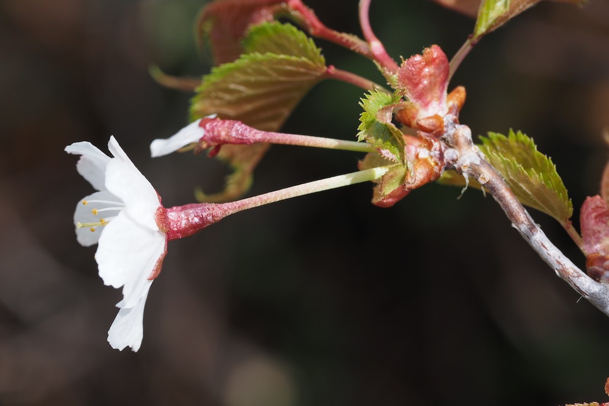 東京大学大学院附属の小石川植物園の初代園長である松村任三が発表した種です。植物の学名にMatsum.と記載されているのはこの松村任三です。タカネザクラの変種としてチシマザクラ(Cerasus nipponica var. kurilensis)があります。タカネザクラは葉の両面、葉柄、花柄、萼筒などが無毛もしくはわずかに毛があるのに対して、チシマザクラはすべてに開出毛が付くという違いがあります。ただし、この特徴は連続性があって、明確に区分けできないそうです。