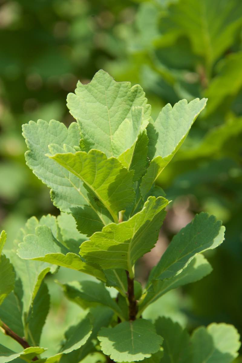 中部地方以北の本州と北海道の山地にある日当りの良い岩場に生えています。樹高は30cmから1mほどです。葉は長さが2〜5cmで先端が丸みを帯び、形は倒卵形で基部はくさび形、鋸歯があります。6〜8月に白い小さな花を複数房花序で咲かせます。[1][2][3]