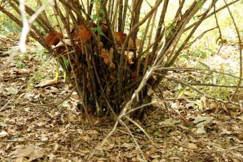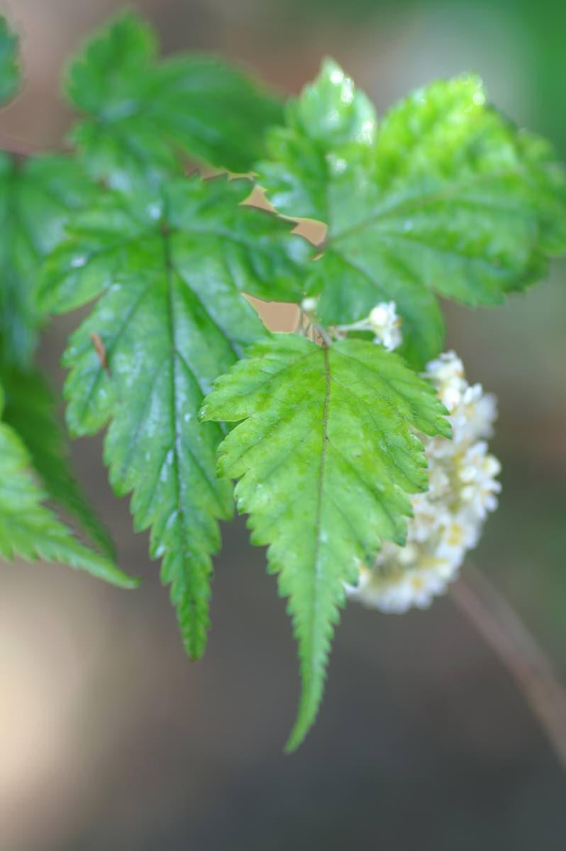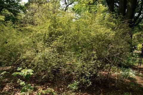 北海道から九州まで、特に太平洋側の標高の低い山地に生えています。根元から幹が多数出て樹高は1〜2mほどになります。葉は長さ2〜4cmの三角形で裂け、鋸歯があり、先端が長く尖っています。樹皮は灰褐色です。5~6月に約5mmほどの白色の小さい花が多数咲きます。[1]