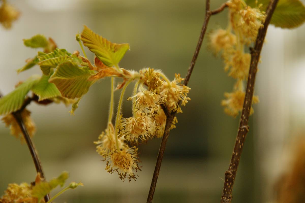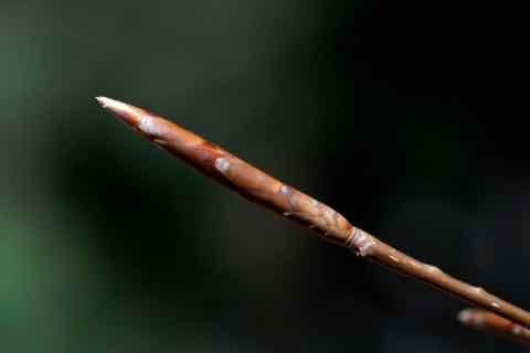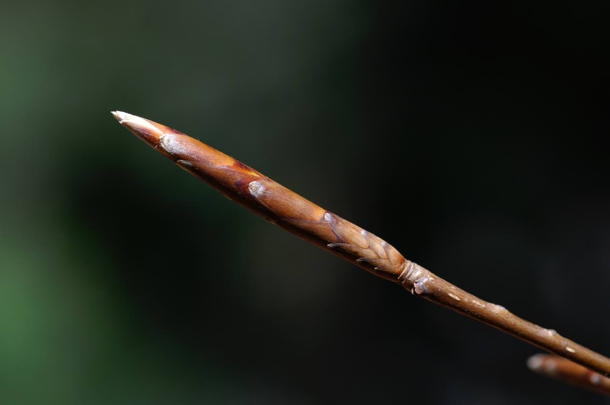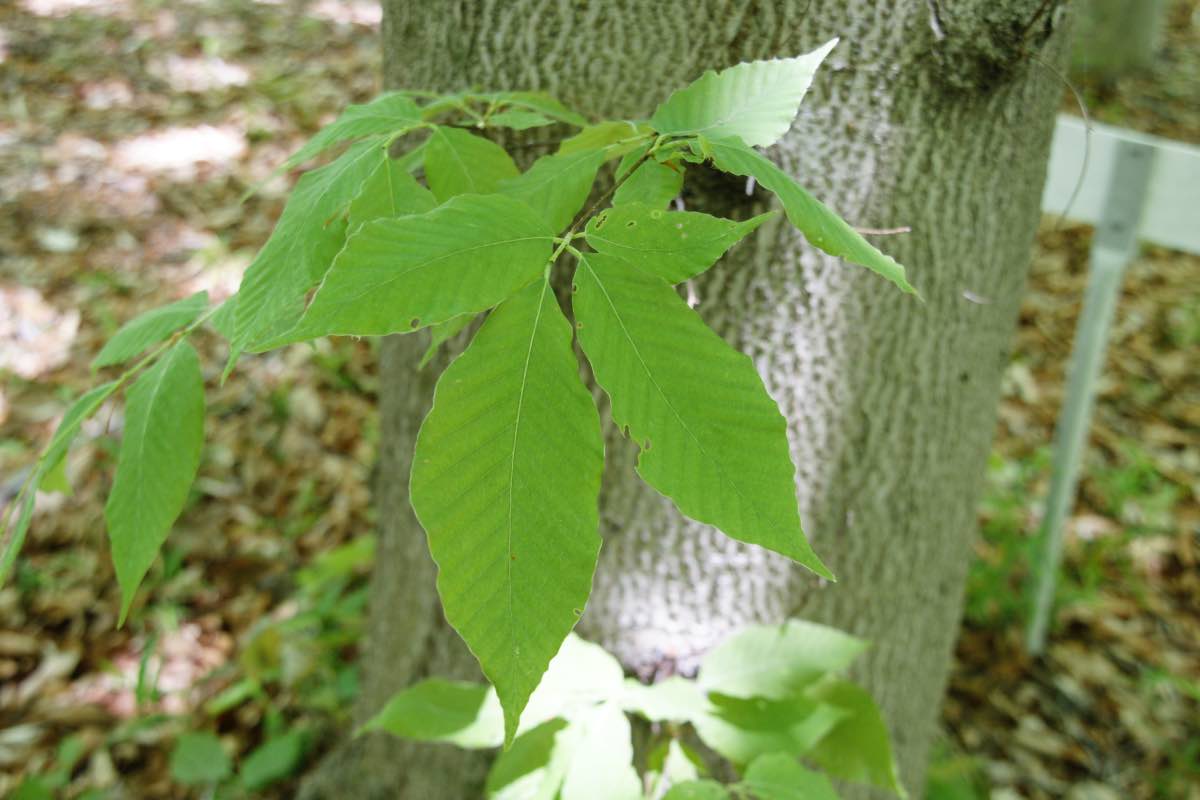 葉は長さが5〜10cmで波が立っているように凹凸があります。ブナの葉と良く似ていますが、葉の厚みがなく、また側脈がブナは7〜11対なのに対して10〜14対です。ブナと違うのは樹皮で、ブナの樹皮が白っぽいのに対して本種は暗灰褐色と黒っぽく、クロブナとも呼ばれる由縁です。またイボ状の皮目も目立ちます。