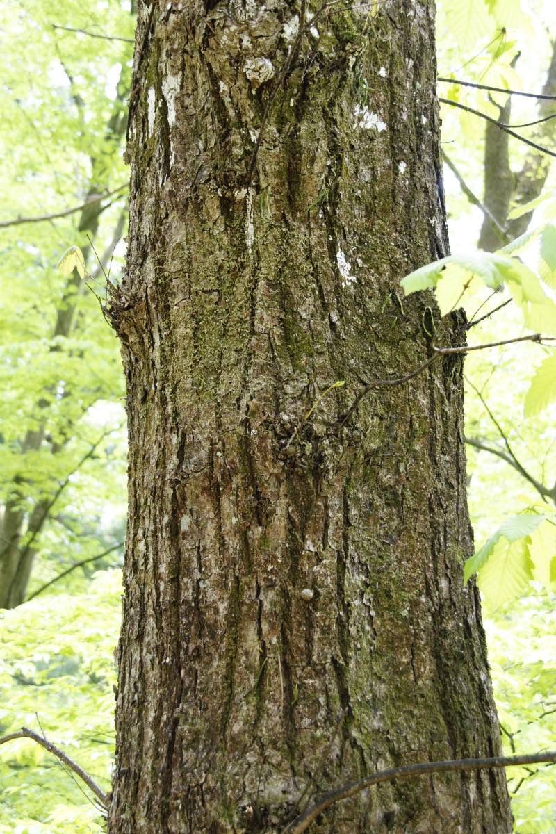樹皮は灰褐色で縦に深く切れ、薄くはがれます。