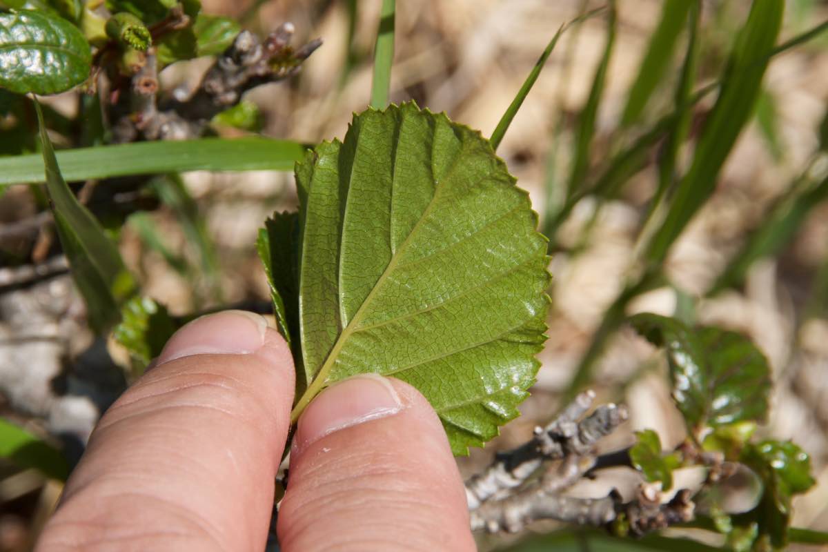 葉は長さが1.5~4cm、広卵形で厚みがあり、側脈が4〜7対で鋸歯があります。