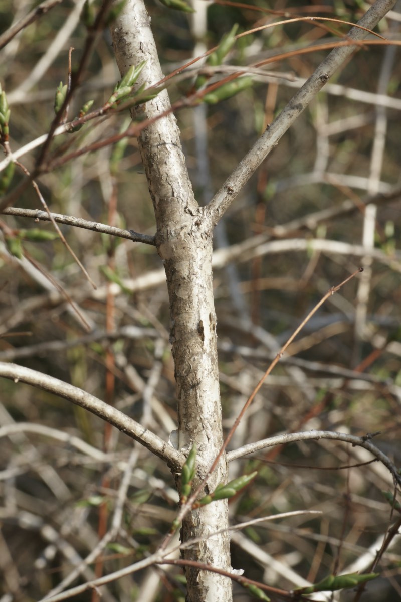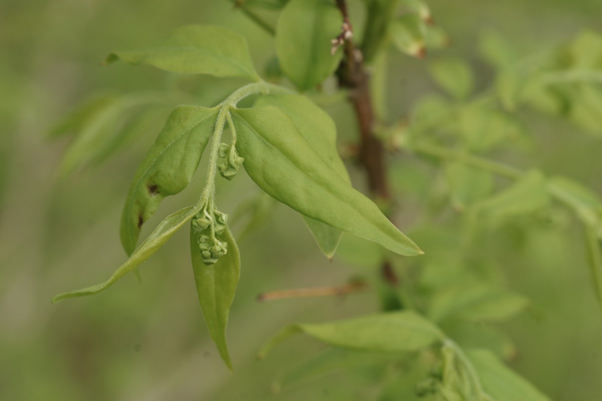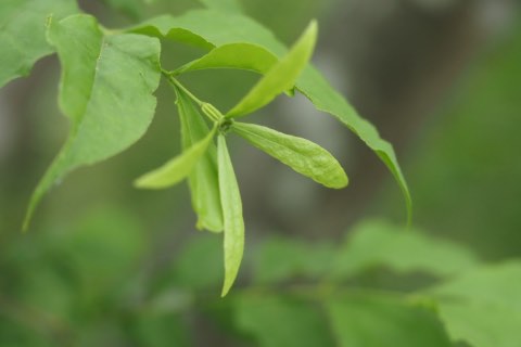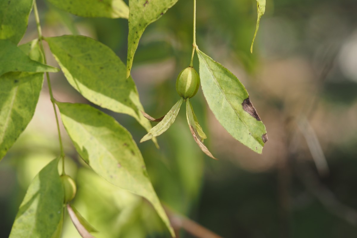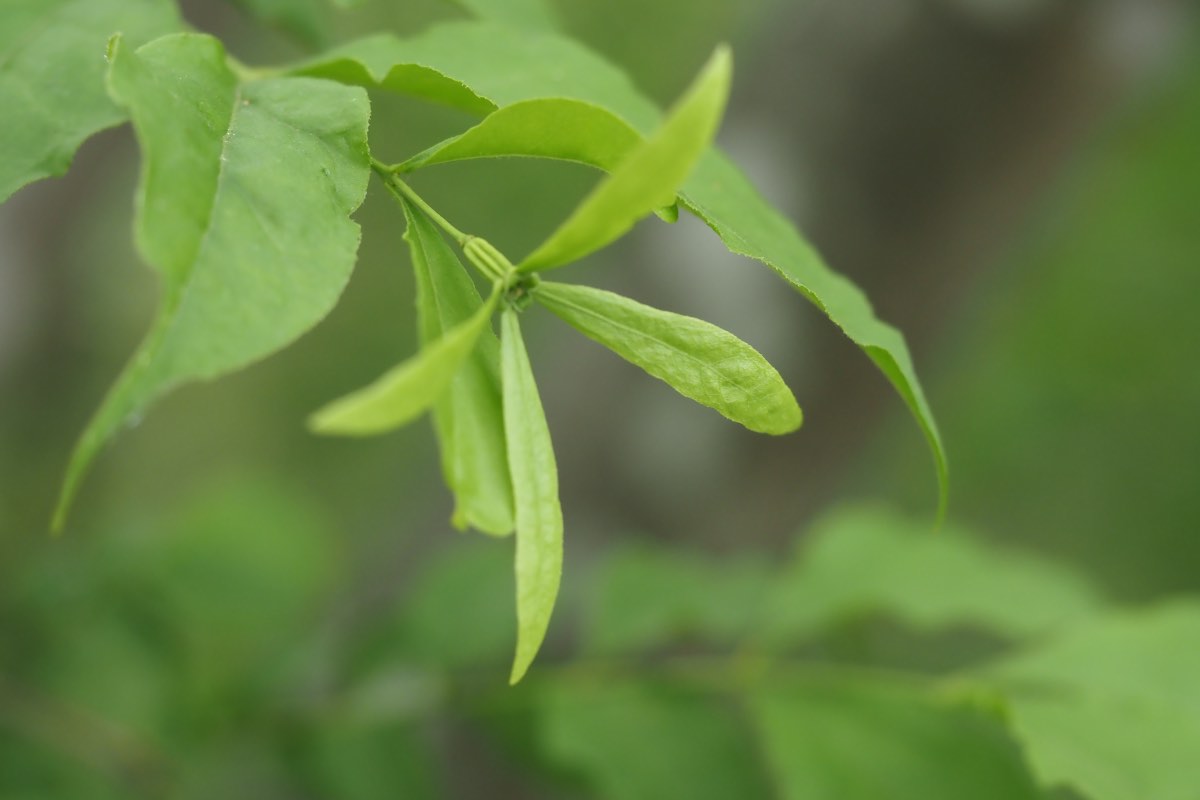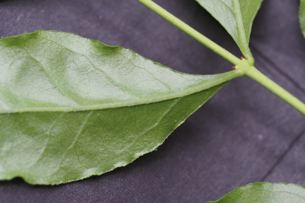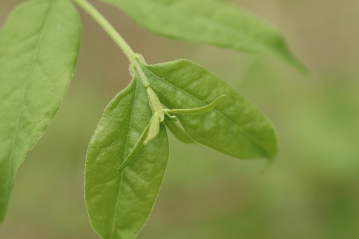 葉身が3〜10cmの先が尖った葉は長い枝に対生し、緑色の若い枝から出ている葉を見ると偶数羽状複葉の様にも見えてしまいます。