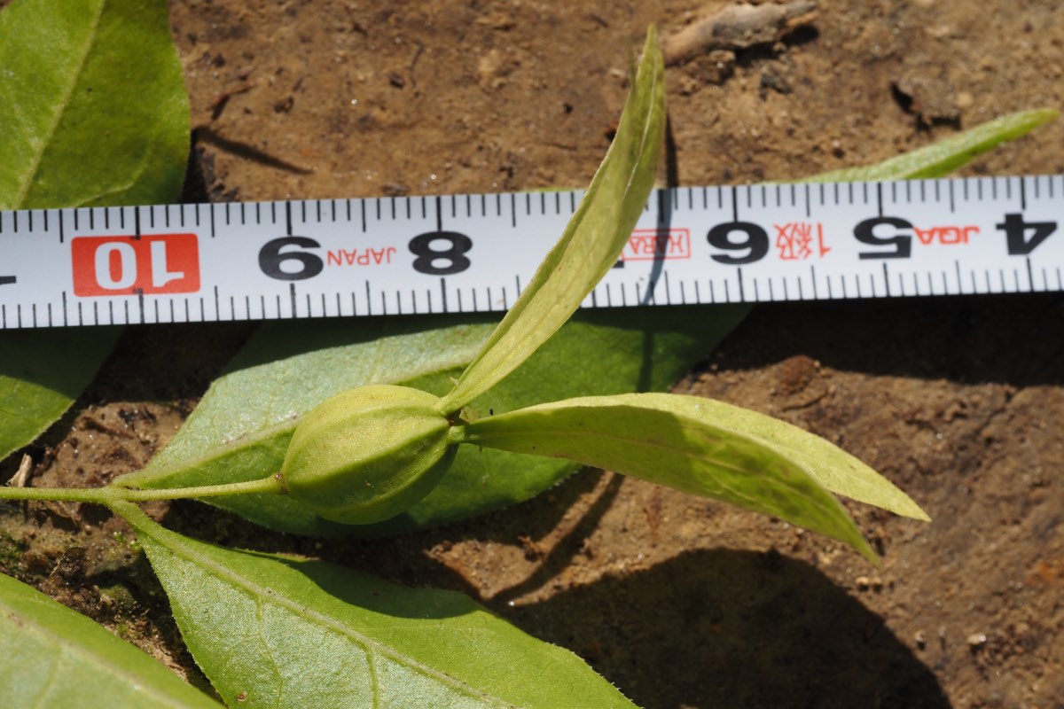 花についている苞が長く先に伸び、苞の手前にある果実は楕円形に膨らみます。