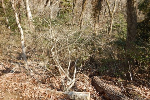 ツクバネは葉緑体による光合成を行いつつ、宿主から栄養を奪う半寄生植物です。球体状のコブを持つ寄生根を張り巡らします。他の根に当たるとそのコブを広げて吸盤のようにして宿主となる根を包み込み、宿主の木部と寄生根の木部が連絡する木部架橋という組織で宿主から栄養分を吸収します。実生の個体は他の木本に寄生しないと生き残れません。特定の樹種に良く寄生すると紹介される場合が多いですが、宿主は広範囲の樹種に渡っていて、選好性はそれほどないようです。一方で尾根伝いに見られることが多く、地形要素が定着のしやすさに大きく影響している可能性も指摘されています。[3]