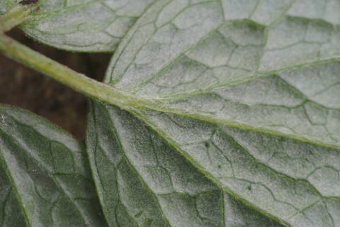 枝から左右に出る葉柄の先に3枚の小葉がつく一回三出複葉です。