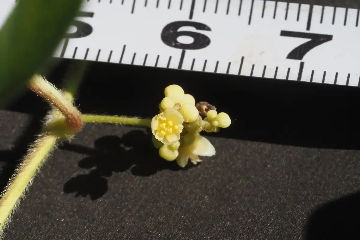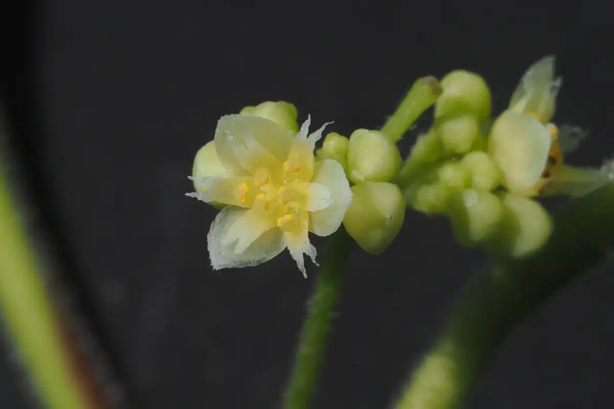 3mm程度の黄白色の小さい花が7〜8月に咲きます。