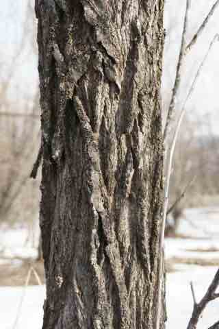 樹皮は灰褐色で縦に深く割れます。