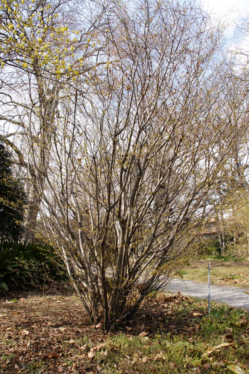 日本固有種で山地の落葉広葉樹林内に多く生えています。日本海側で見られる葉の裏の葉脈に毛がある個体をケアブラチャンと称して固有変種として区別する見方もあります。高さは5mほどになり、株立ちになって自然と球形に近い樹形になります。樹皮は灰褐色、平滑で小さい皮目があちらこちらにあります。冬芽は特徴的です。枝の左右両端に2個づつ球形の花芽が長さ4mm程度の柄の先に、また枝にくっつく様にして紡錘型の葉芽があります。葉は長さが5〜8cmの卵形で先端が尖り全縁です。葉柄が赤味を帯びているのが特徴です。花は3〜4月に葉の展開の前に咲き始めます。淡い黄色の小さい花が1つの花序に3〜5個つきます。雌花には葯のない仮雄しべが9本あります。[1][2][3][4]