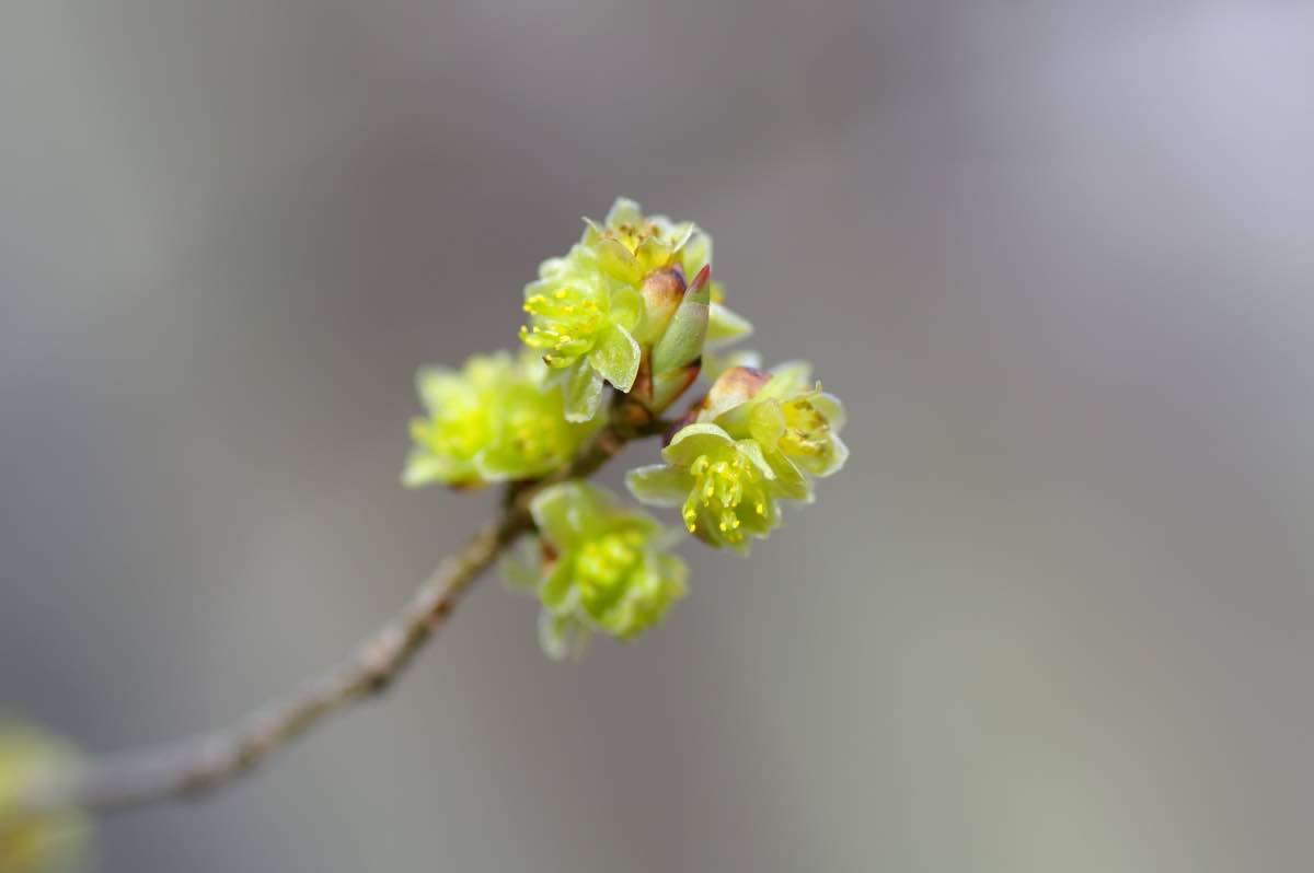 淡い黄色の小さい花が1つの花序に3〜5個つきます。
