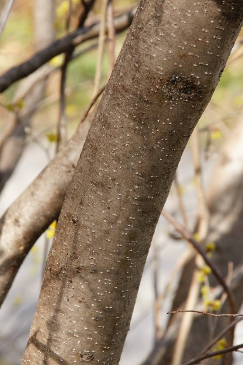 樹皮は灰褐色、平滑で小さい皮目があちらこちらにあります。