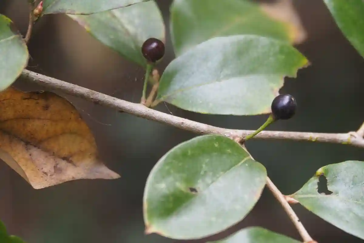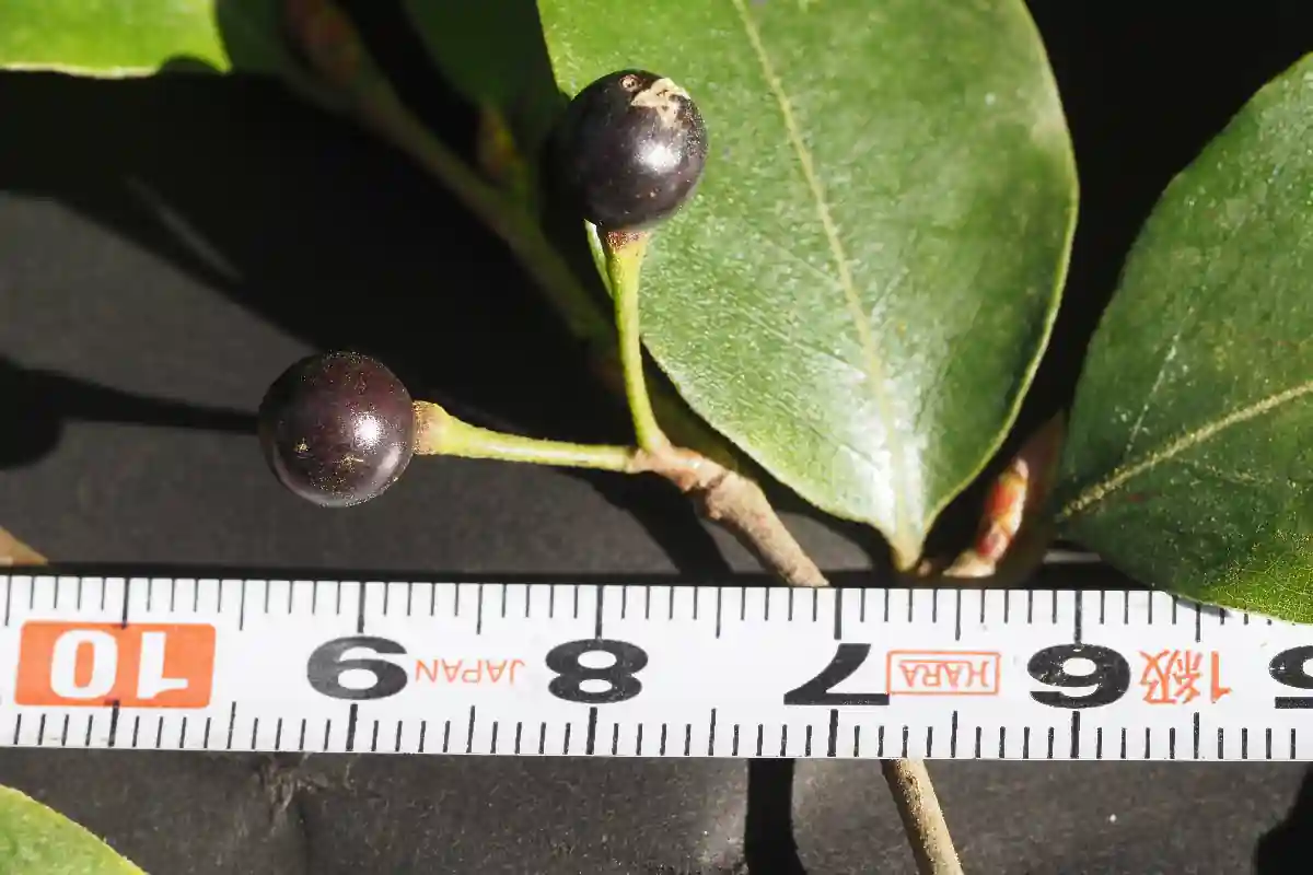 10〜11月に黒く熟す果実は直径が6〜7mmの球形です。
