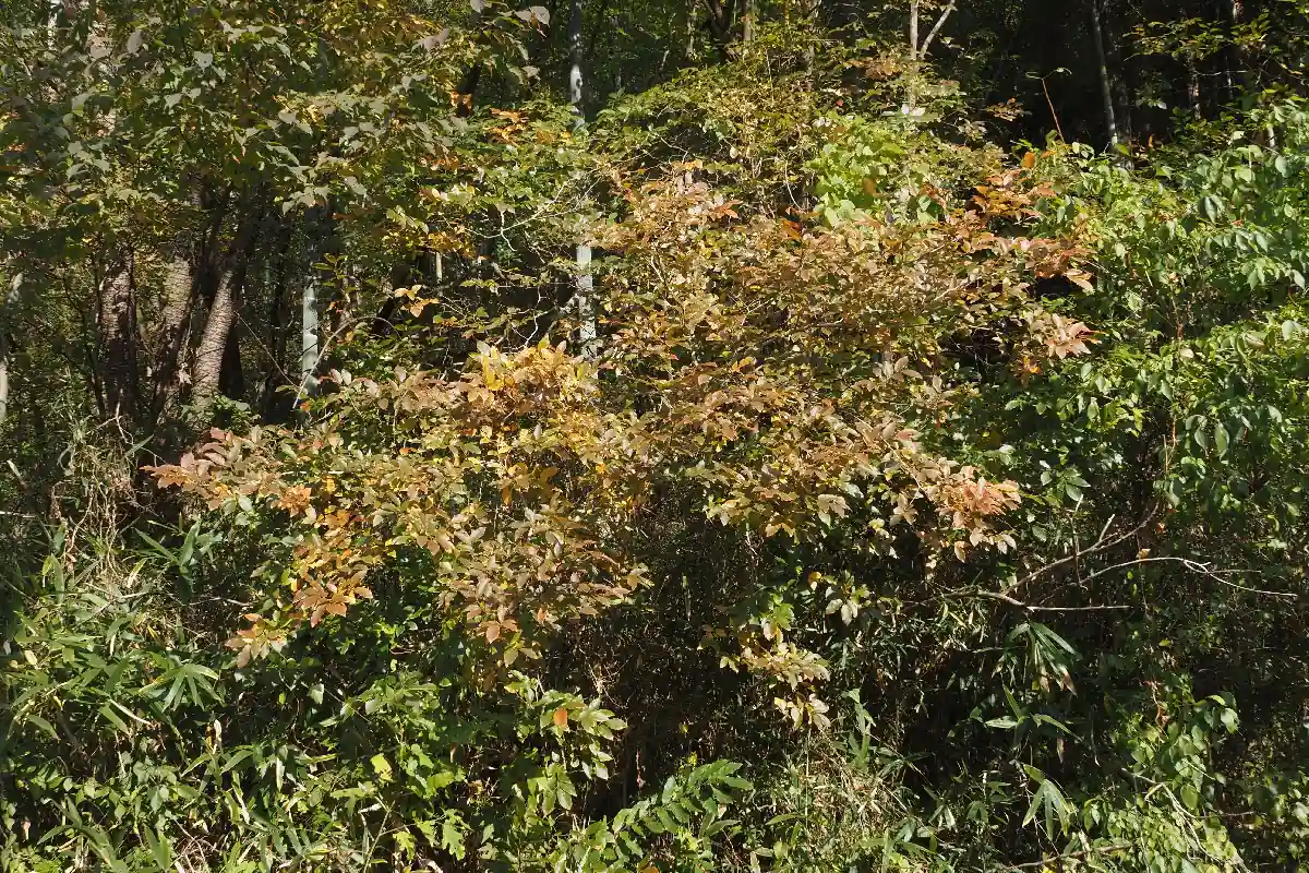 中国など海外では雄株もあるそうですが、国内に自生しているヤマコウバシは雌株しか見つかっていません。つまり無性生殖をしていると考えられますが、その自生地は本州から九州までとかなりの範囲であり、長い間の謎でした。ヤマコウバシは無融合生殖(アポミクシス)という一種の無性生殖を行うことが知られています。被子植物における無融合生殖とは受精を経ずに種子を生産することのできる生殖様式です。そのため挿し木も無性生殖ですが種子を作らないため無融合生殖ではありません。無融合生殖をする木本は他にもキイチゴ類やサンザシ、ザイフリボク、ナナカマドなどがあります。実は、中国国内でも雄株は極めて稀な存在であることがわかっています。中国本土のほぼ全域から300個体を採取した研究でも雄株は採取できなかったそうです。この研究では葉緑体DNAと核DNAを用いた分析により遺伝的変異が調べられました。大きく2つの集団に分けられたものの遺伝的変異に乏しく、有性生殖も一定程度ありましたが多くは無性生殖であると推測されました。一方の日本国内のヤマコウバシは、最近の研究により新たな知見が得られました。この研究では仙台市から熊本市までの29か所から採取した147サンプルのDNAを分析した結果、遺伝的変異が非常に乏しく、国内のヤマコウバシすべてが1本の雌株から生じたクローンであることが示唆されました。[3][4][5]
