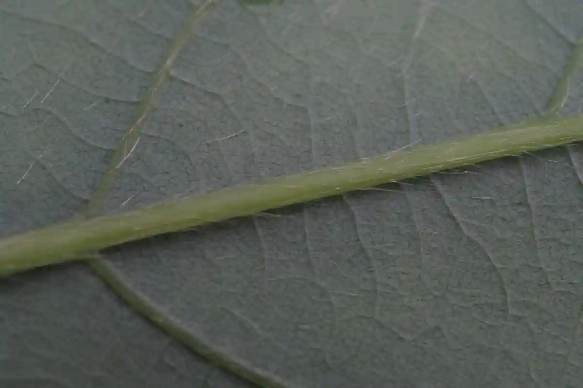 4月、展開し始めた葉の脇から小さな花を咲かせます。