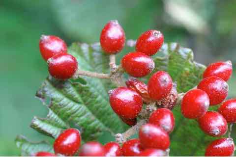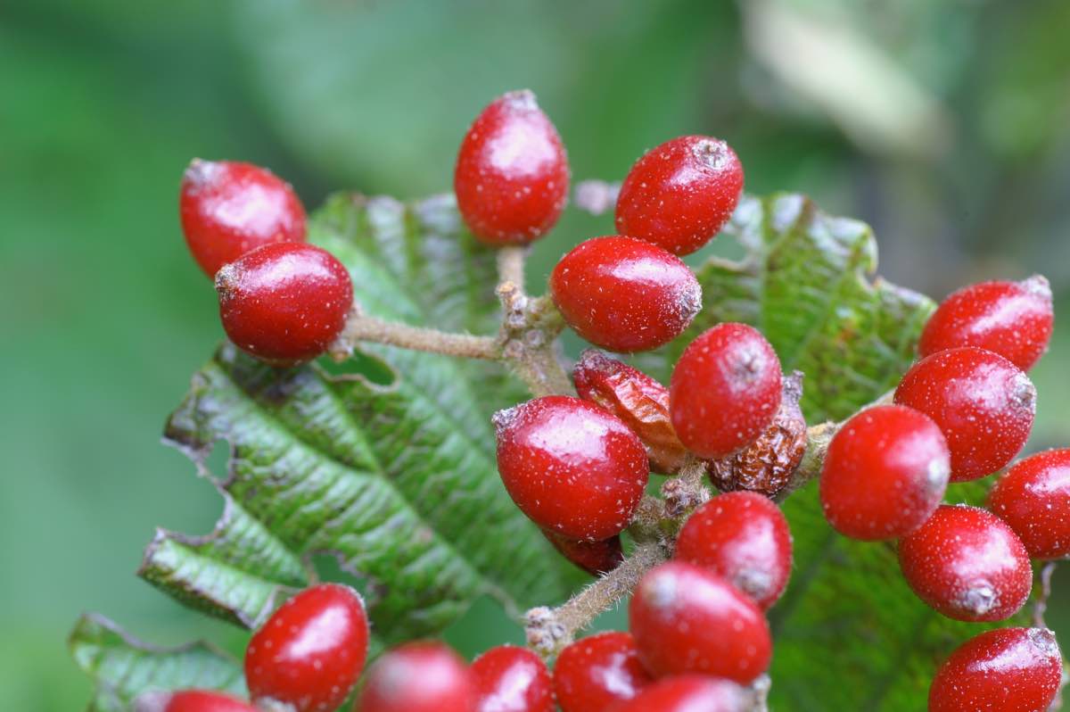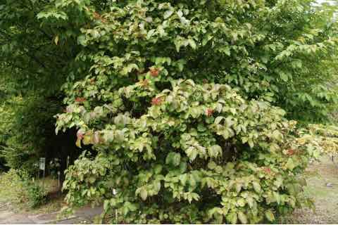 北海道から九州に広く分布しており、雑木林にも普通に見ることができます。樹高は3~5mになり、葉は長さ6~14cmの卵形です。5~6月に白い小さな花をたくさん咲かせ、秋には大きさ8mmぐらいのきれいな卵形の赤い実ができます。[1][2]