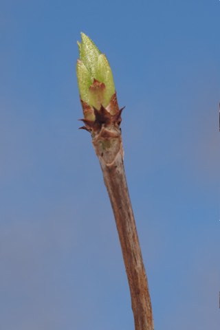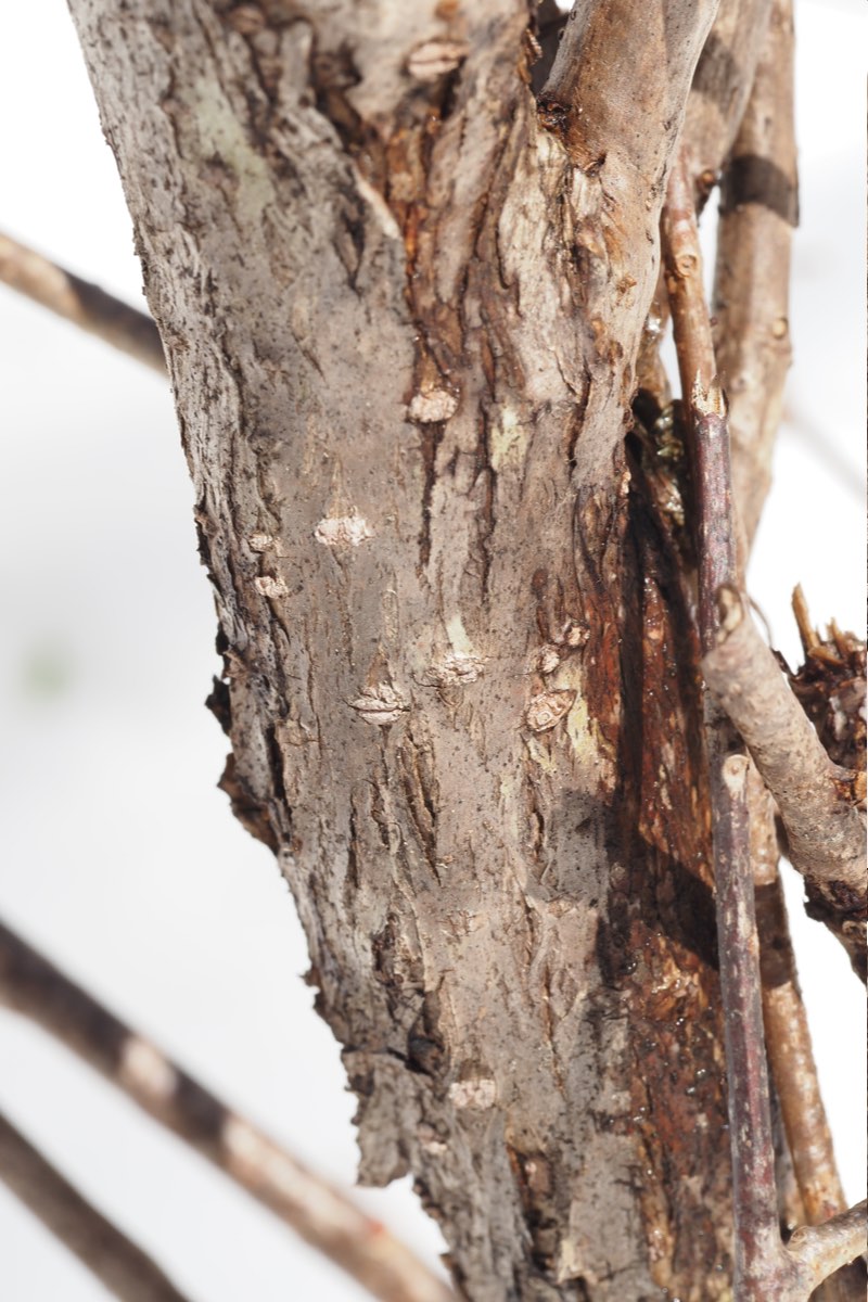 縦に裂ける樹皮は灰褐色です。