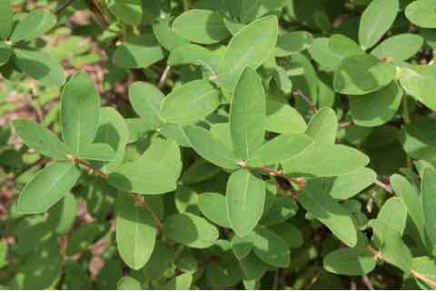山地や湿原周辺に生え、北海道苫小牧市の勇払原野が自生地として有名です。株立ちして樹高1mほどになります。葉は長さ2〜8cmの楕円形で、先端は丸みを帯びていますが、尖るもののあります。樹皮は灰褐色で縦に裂けます。黄白色の漏斗状の花が5〜6月に咲きます。花は2個ずつ咲きますが、基部には合着した子房があります。果実は長さ1〜2cmほどの楕円形で、8月ごろに粉白を帯びて黒紫色に熟します。[1][2]