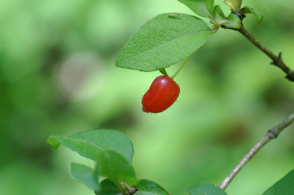 同属のウグイスカグラとの違いは毛が多いことです。若い枝や葉、花から果実まで腺毛で覆われています。