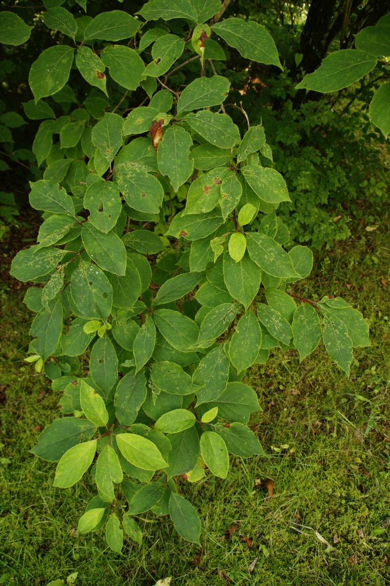 山地や草原の日当りが良いところに良く生えています。株立ちして高さ2〜5mほどになります。葉は長さ5〜15cmの卵形または楕円形で、多くはその先端が尖ります。葉縁には浅い鋸歯があり、また表側に軽くカールしていることが多いです。樹皮は赤褐色で、縦に裂けてはがれます。