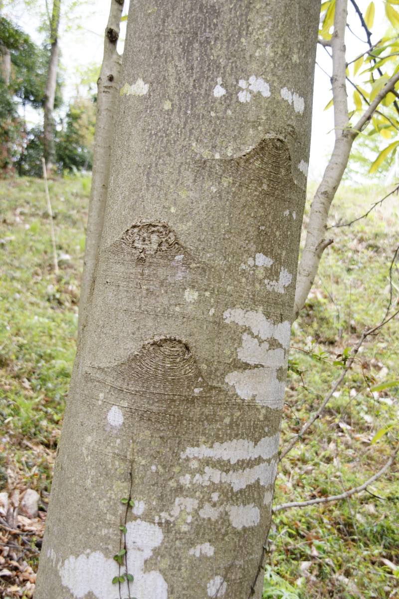 稚樹は耐陰性があり、光を遮っていた周りの木が枯れる等してギャップが形成されると、勢い良く生長し、林冠を確保しようとします。また萌芽力も旺盛で株立ち状態の個体を見ることができます。生長が早い分だけ寿命はそれほど長くなく、200年ほどと言われています。