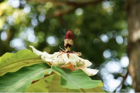 本種は両性花ですが、雌しべが機能した後に雄しべが機能する雌性先熟です。開花は3〜5日間ですが、初日の開花は雌花の役割を、いったん花を閉じた後の2日目以降の開花は雄花の役割を果たします。これは自家受粉による近交弱勢(劣性有害遺伝子が発現する)を防ぐためのものです。ところが同種は自身の花を一斉に咲かせるのではなく、ばらばらに咲かせます。そのため同じ木の別の花同士で受粉する例が多く、実際にそのような種子は、生長できずに枯れることが多いそうです。[5][6]