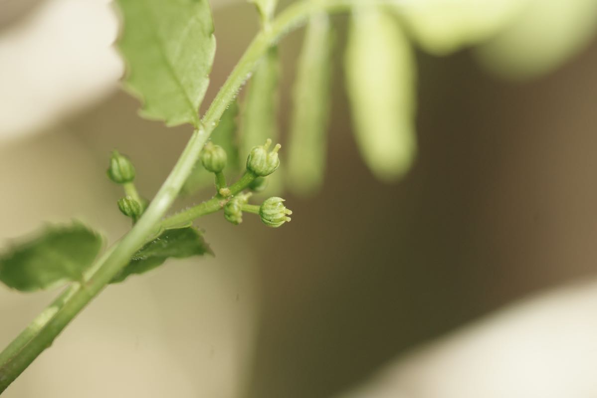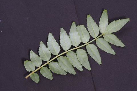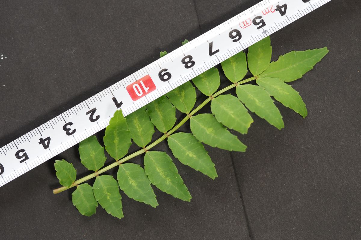 葉は奇数羽状複葉で葉軸には小葉が5~9対つきます。