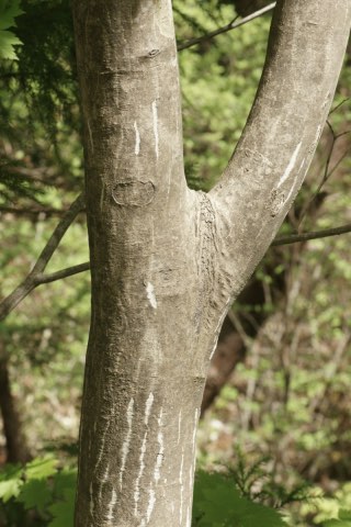 樹皮は灰褐色で縦に浅い裂け目が入ります。