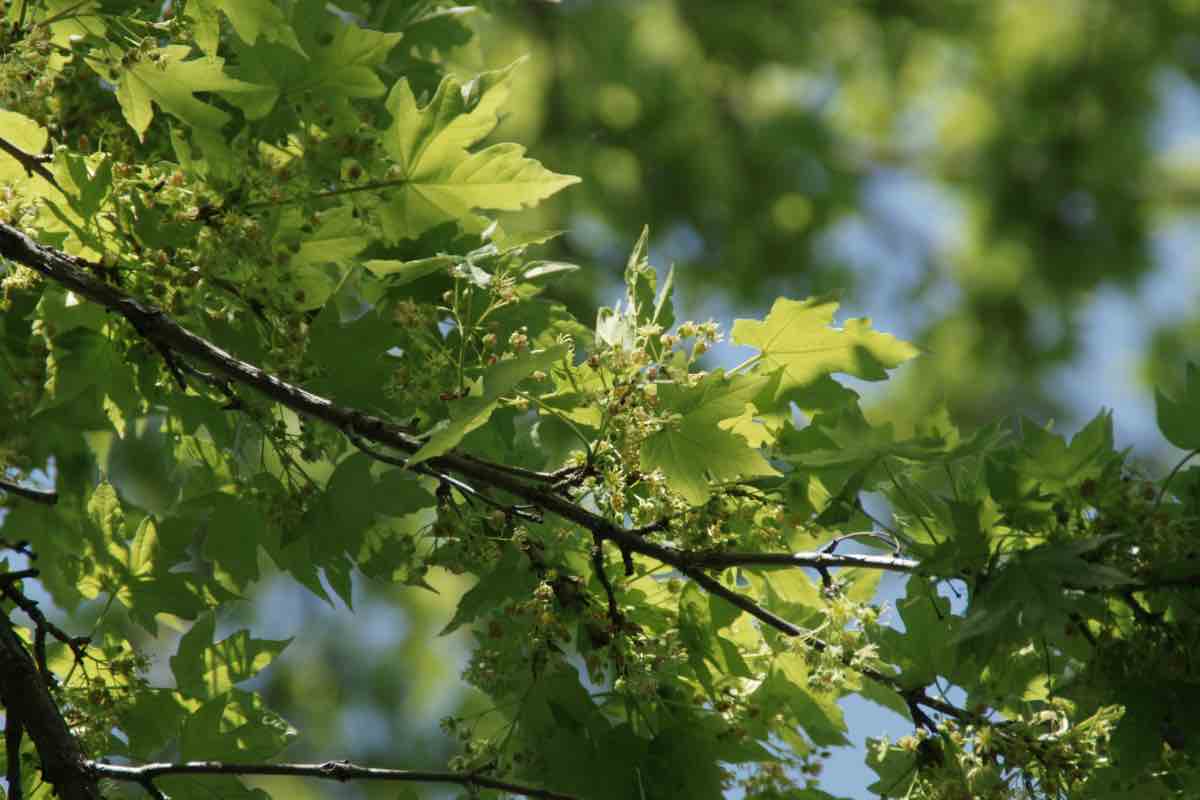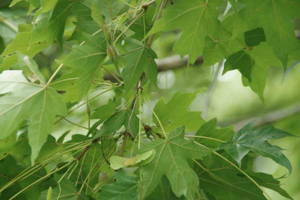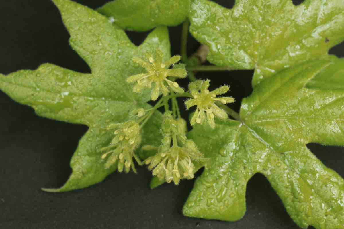 クロビイタヤは川沿いや湿地といった湿った土地に自生しています。日本固有種であり、北海道の太平洋側、東北の北部、中部の山岳部に隔離分布しています。樹高は10〜20mほどになり、コルク質の樹皮は灰褐色で縦に細かくひび割れます。葉は手のひらのように五裂し、先端の鈍い鋸歯があります。5〜6月に黄色い花を枝先に咲かせますが、雄しべの退化した両性花と、雄花の両方が付きます。先に雄花が咲き、その後で雌花が開花します。果実は翼果ですが、翼が水平またはやや上方にそります。この翼果の種子部、葉裏の葉脈、葉柄などに毛が生えています。なお果実に毛がないものをシバタカエデ(Acer miyabei f. shibatae)と呼びます。[1][2][3][4]