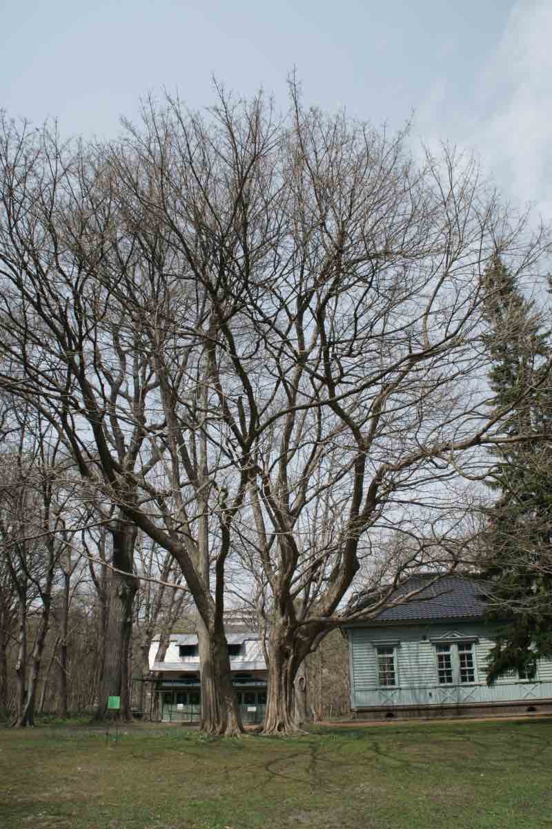 コルク質の樹皮は灰褐色で縦に細かくひび割れます。