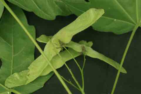 果実は翼果ですが、翼が水平またはやや上方にそります。