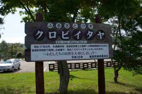 北海道新冠町字明和で明治17年にこの新種を宮部金吾が発見しており、明和に生えていたクロビイタヤが新冠町郷土資料館の前に移植されています。