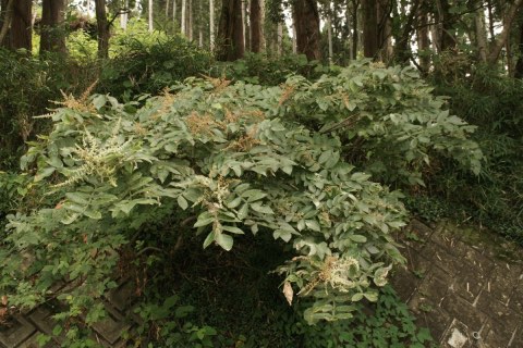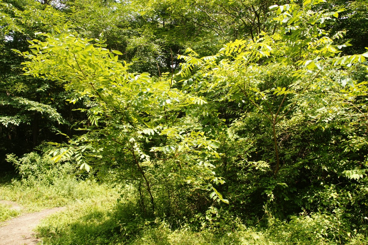先駆樹種であるヌルデの種子は鳥散布によって散らばり、年間を通して表土に埋土種子があって20年以上も発芽能力を保持ているそうです。陽を得られると発芽、多種に先駆けて急激に生長します。最初の1年で樹高が1mにも達しますが、その後の伸びは緩慢です。埋土種子の表土シードバンクを利用した緑化施工ではよくヌルデの個体が出現しています。水平根による栄養繁殖でも個体を増やすことがわかっています。韓国南部の森林での調査によると、クローン個体の平均対間距離は25m近くあり、中には50m以上離れたクローンもあったそうです。[5][6][7][8]