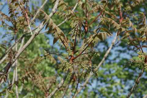 5〜6月に黄緑色の小さな花を多数咲かせます。