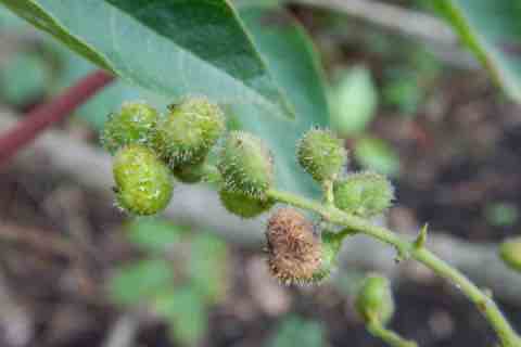 果実を覆っている外果皮には毛が密生していて、9〜10月になるとこの果皮が剥がれて白い中果皮が姿を表します。