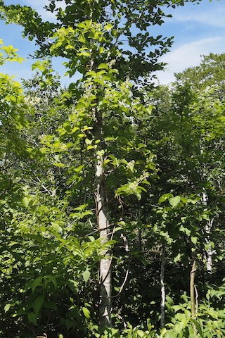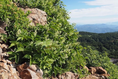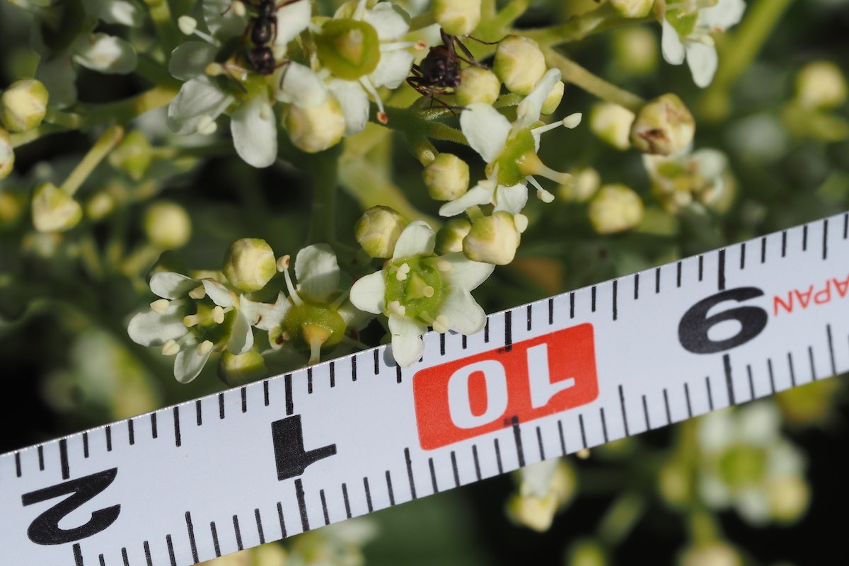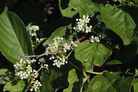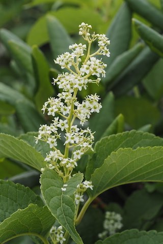 7〜8月には円錐花序に多数の小さな花を咲かせます。