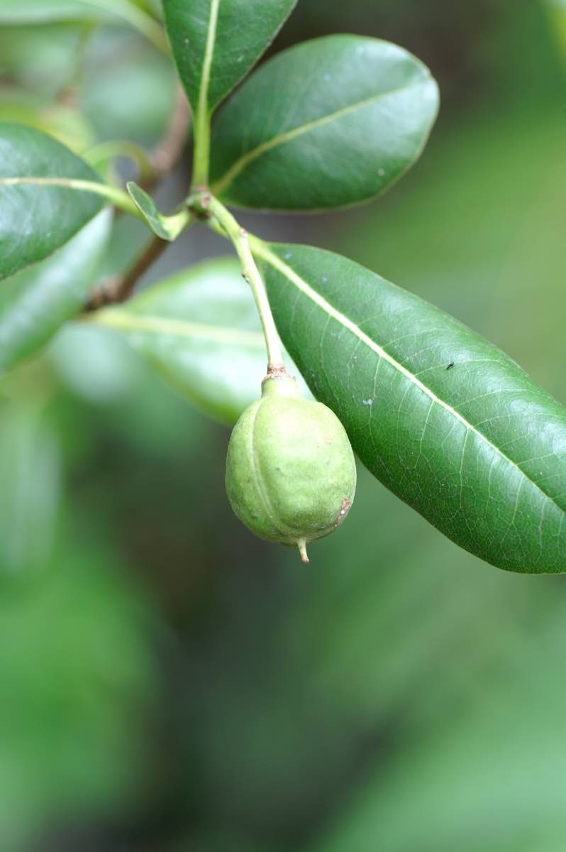 東北地方南部から沖縄の海岸にある低木林内や岩場に生えています。根元から枝分かれしやすく樹高は2〜3mほどまでですが、一部には8m近くになるものもあるようです。樹皮は淡褐色で滑らかです。葉は長さが5〜10cmで葉柄側が細くなる倒卵形で、見た目は携帯型の靴べらに似ています。4〜6月に白い小さな花を多数咲かせ、芳香を出します。雄花には退化した雌しべが、雌花には退化した雄しべがあります。直径1.5cm程度の果実が11〜12月に灰褐色に熟して割れ、表面が粘つく赤い種子が顔を出します。鳥のくちばしや羽、足などに付いて種子が散布されると考えられています。[1][2][3]