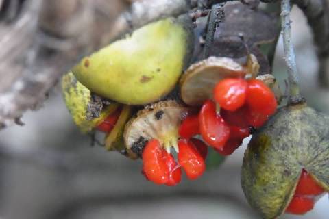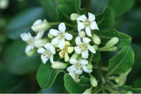 花の香りが甘くて良いのに対して、枝や葉は臭いがあって、燃やすと悪臭を放ちます。昔は、竹さおの先に竹かごを付けその中にトベラを入れたり、家の出入口の扉にトベラをかけたりして、厄除けや魔除けにしていたそうです。トベラの語源もその「扉」からきていると考えられています。[6]