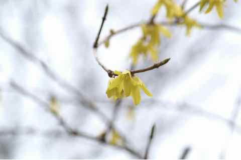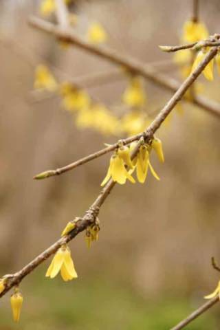 花は3~4月、葉の展開より前か同時に、長さ10mmほどの花弁が4つに裂けた黄色い花を咲かせます。庭木に良く植栽される「レンギョウ」は江戸時代の前期ごろに日本へ渡来してきたともいわれている中国原産の同属の低木です。レンギョウは多数の花を咲かせますが、ヤマトレンギョウはまばらにしか咲きません。