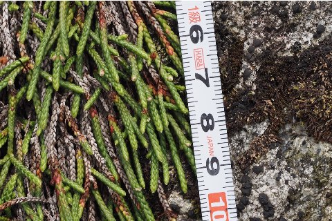 樹高は10cm前後と低く、よく分枝した枝が岩をはって横に広がります。