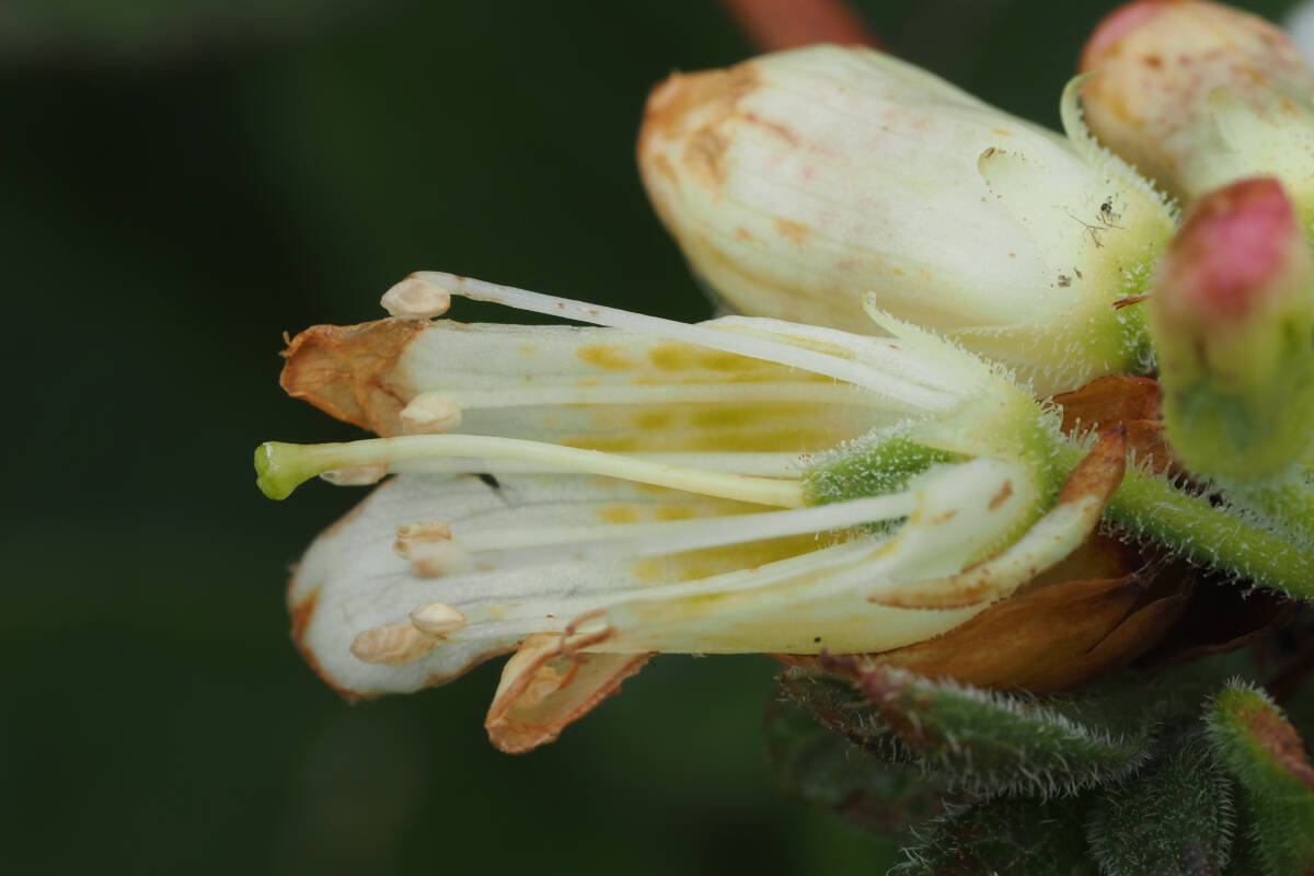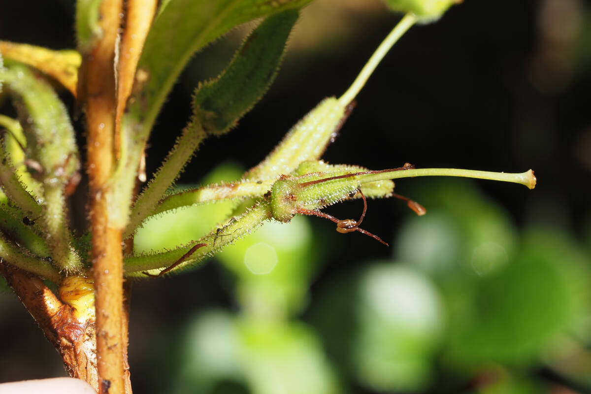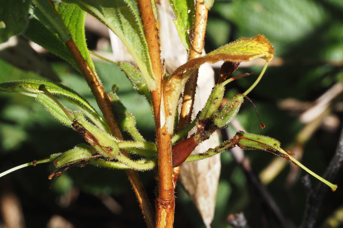 9月ごろに熟す果実は朔果で腺毛が残っています。
