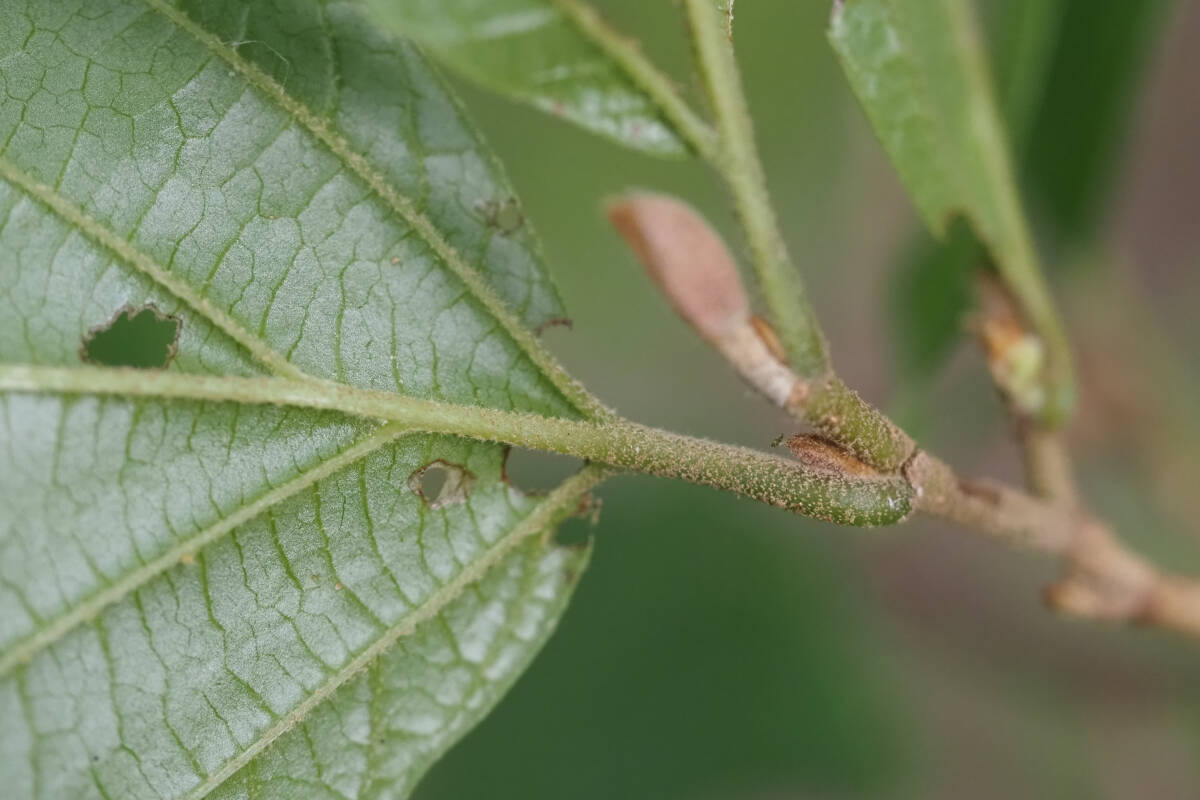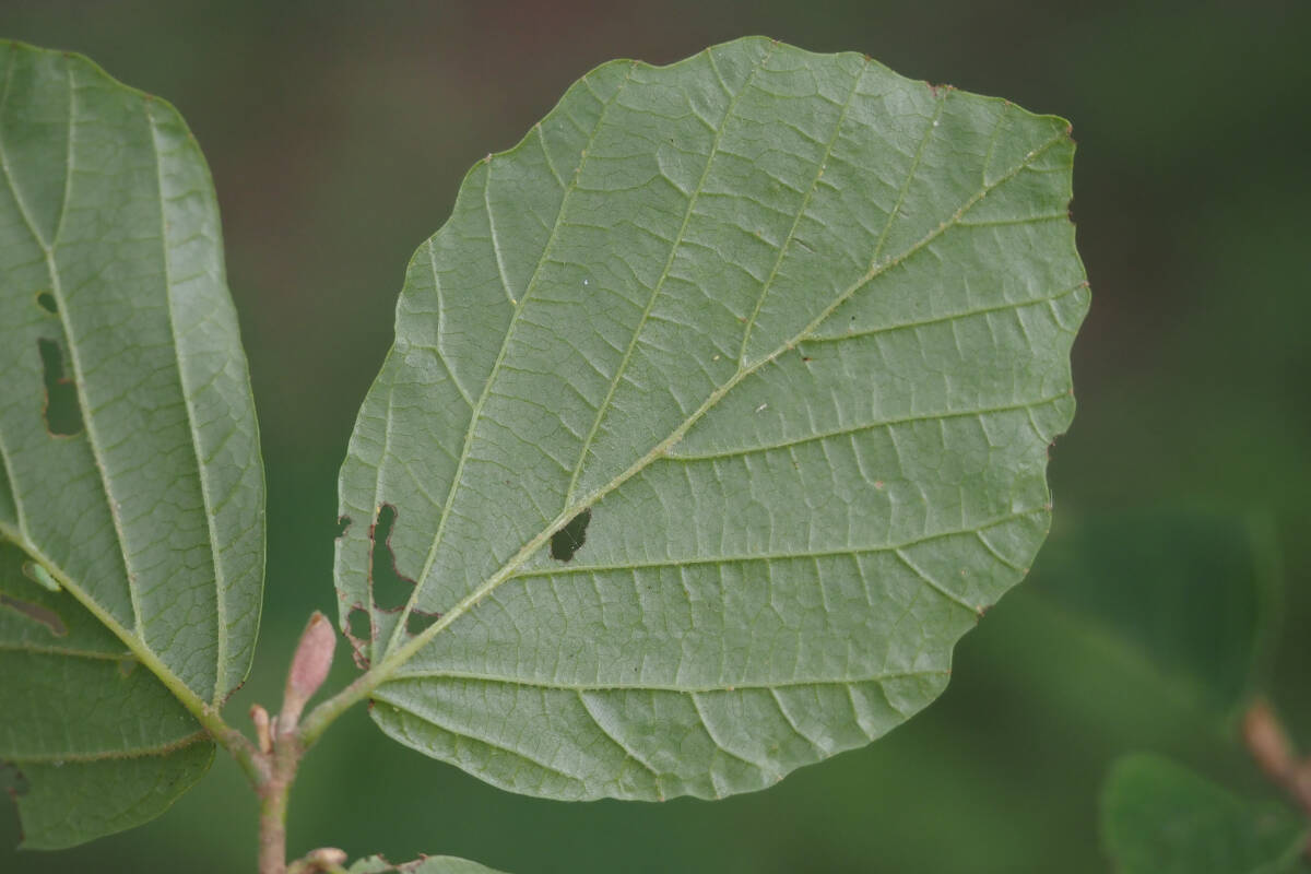 マンサクと異なり、マルバマンサクの葉先は丸みがあって尖らず、葉の裏には星状毛がほとんどありません。